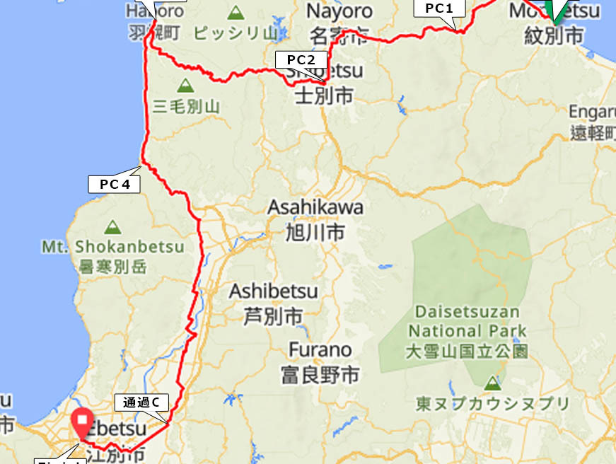 - スタート場所 紋別市 紋別セントラルホテル駐車場(予定)