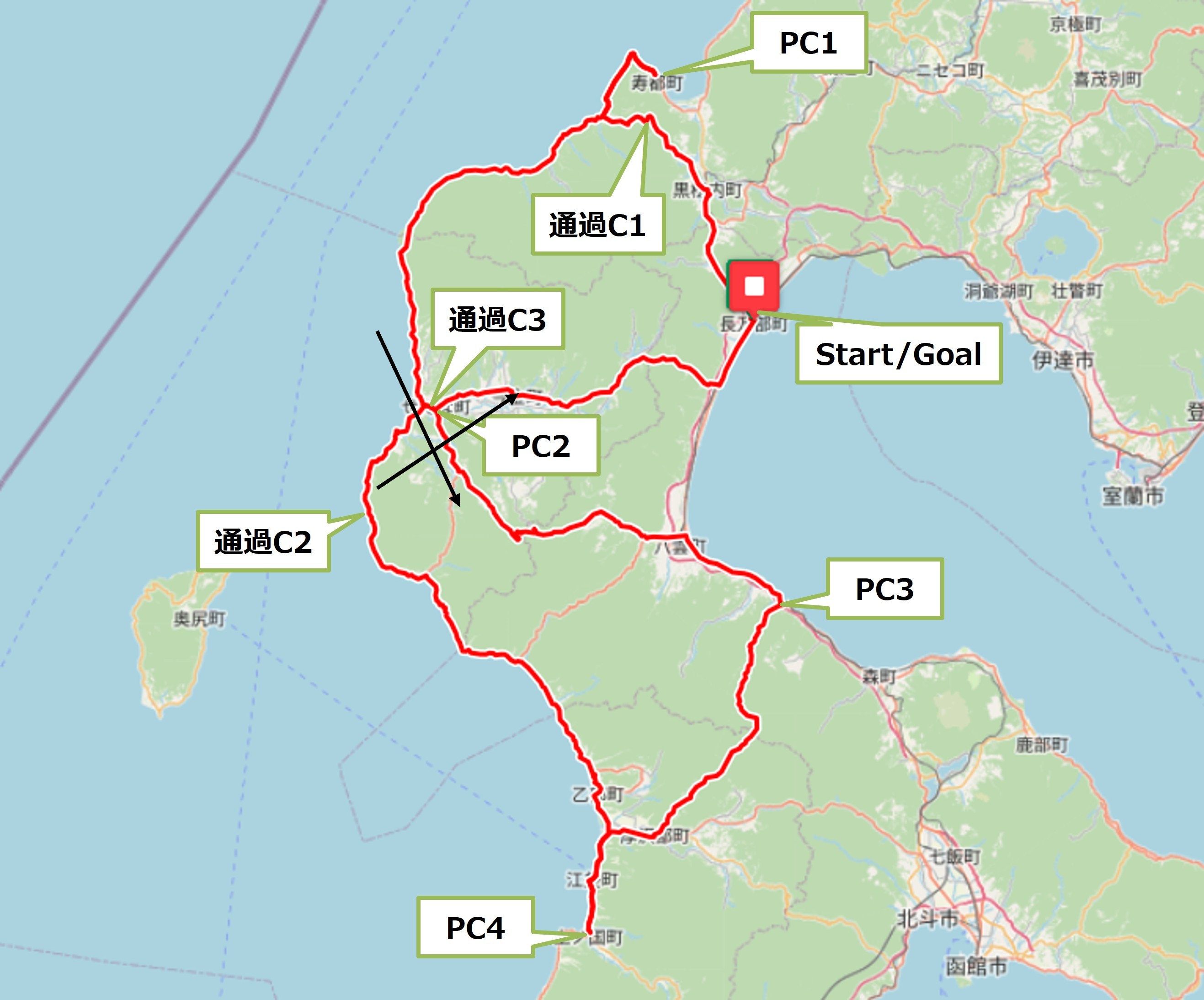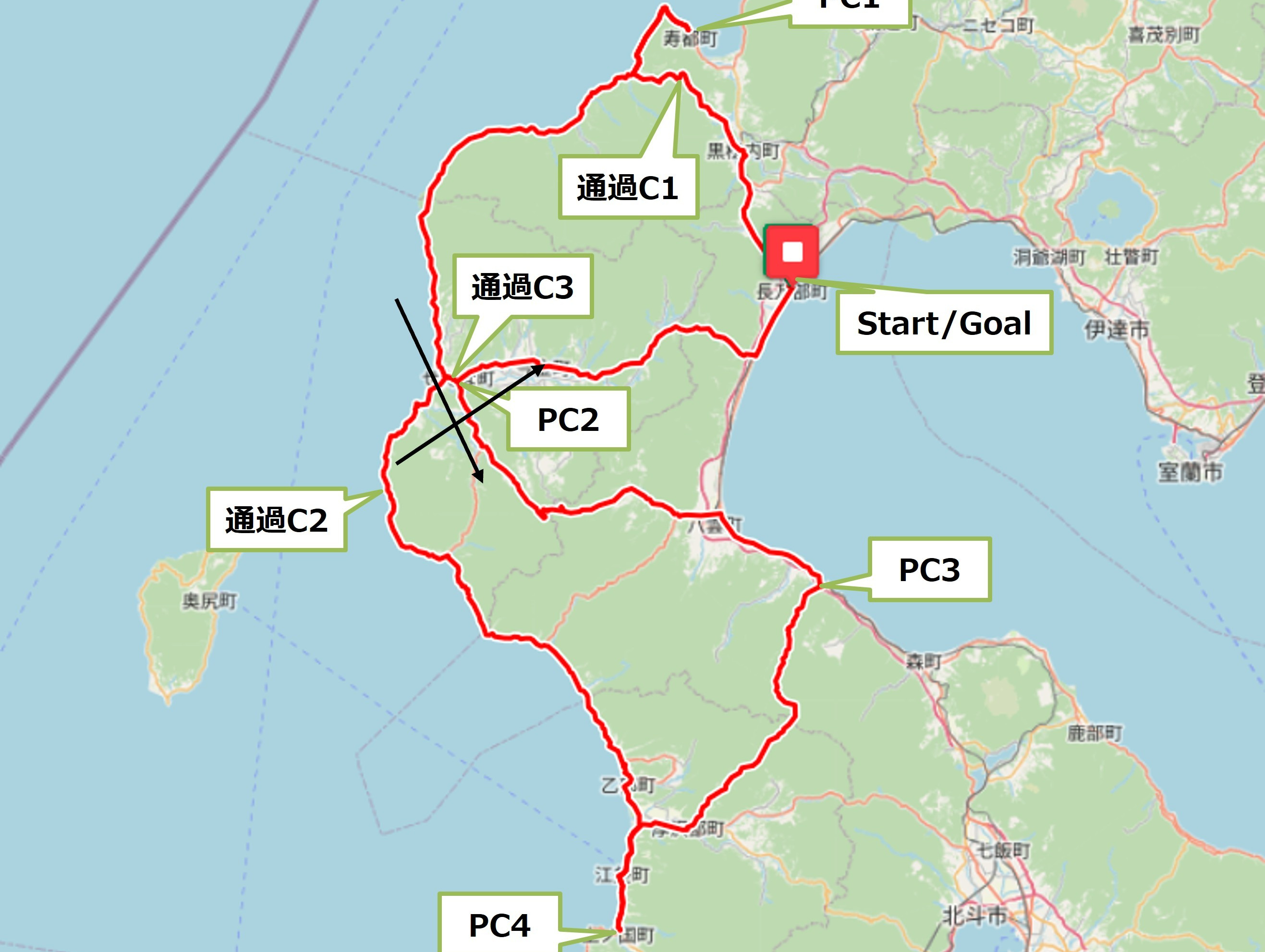 - スタート・ゴール場所 長万部温泉街(予定)