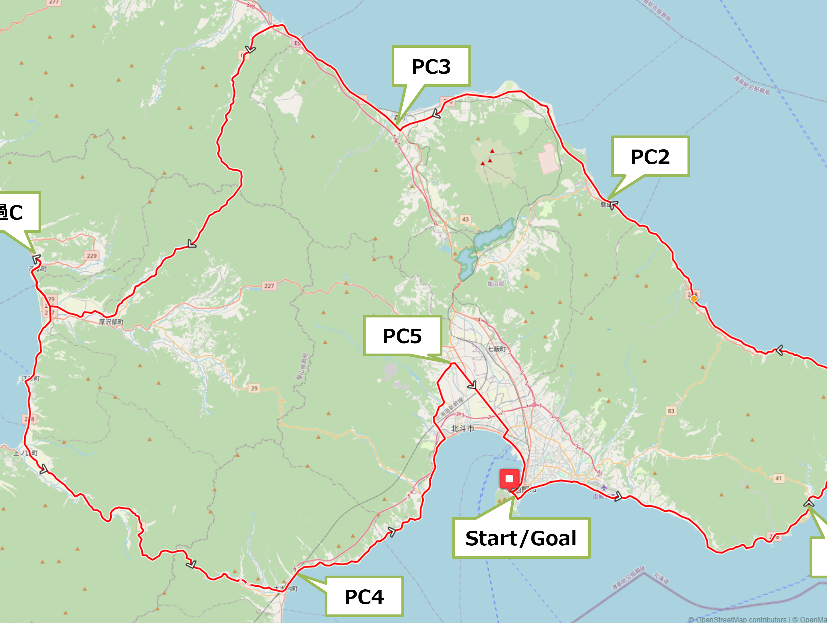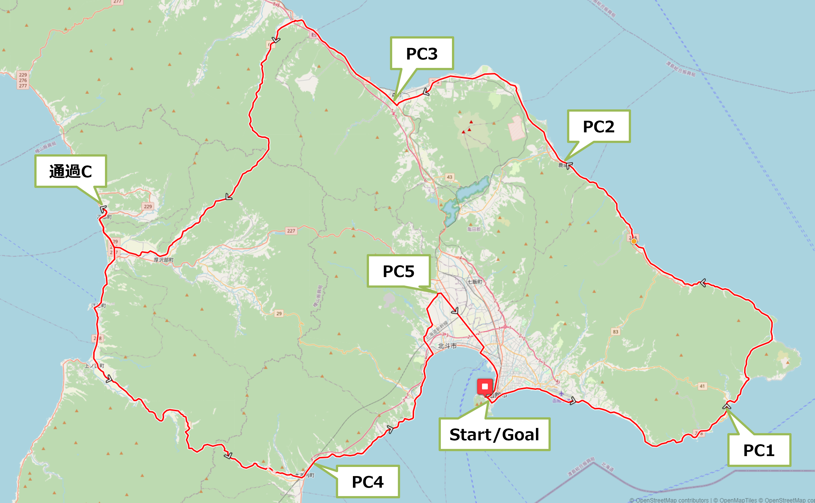 函館での夜スタートは今回が初めてです。そのため、参加者全員が翌日の日没までに帰着することができます。コースは函館発着で渡島檜山を走ります。津軽海峡,噴火湾,日本海と三つの海岸がそれぞれの風で迎えてくれるでしょう。比較的標高差の少ないコースです。風光明媚な大沼、秘湯銀婚湯。秋の初めということで、夜は冷え込むだろうから、防寒着を持参し、寒さに備えて走ろう。